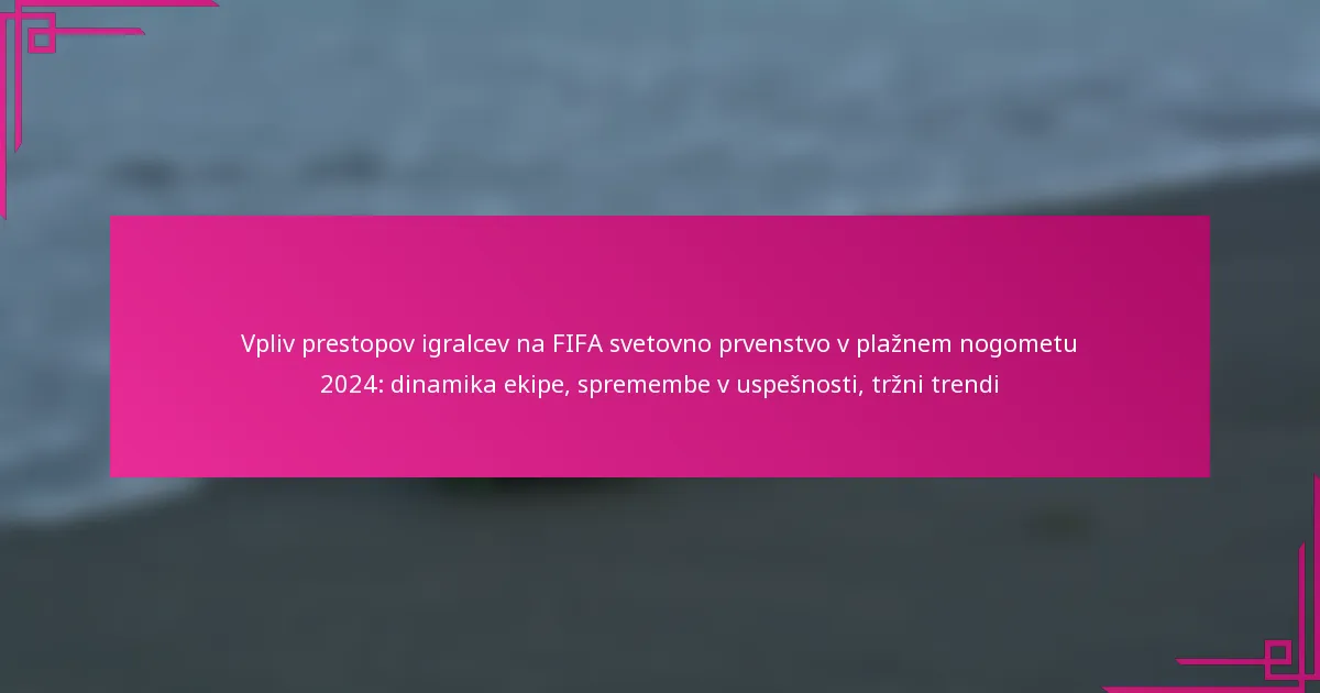 Kako prenosi igralcev vplivajo na dinamiko ekip na FIFA svetovnem prvenstvu v plažnem nogometu 2024?