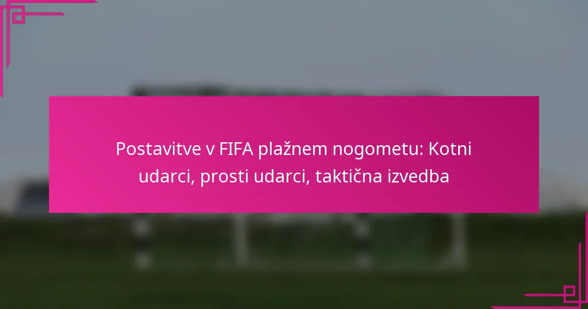 Postavitve v FIFA plažnem nogometu, kot so kotni streli in prosti streli, so kritični trenutki, ki lahko spremenijo potek tekme. Te situacije omogočajo ekipam, da izvedejo strateške igre, kar poudarja pomen natančne izvedbe in timskega dela. Obvladovanje teh postavitev lahko znatno poveča priložnosti za zadetek in splošno uspešnost igre.